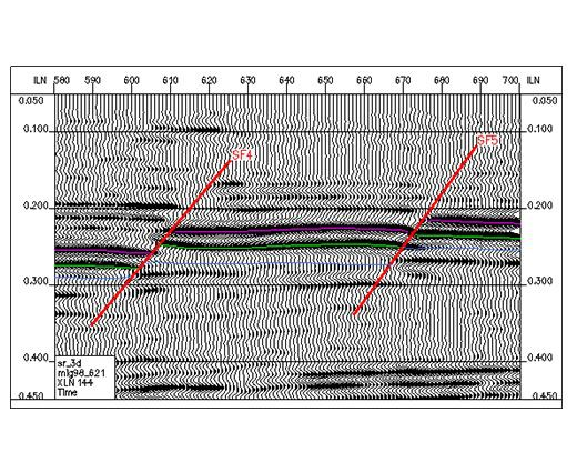 Figura 6 Reflexão das falhas no perfil de tempo sísmico
