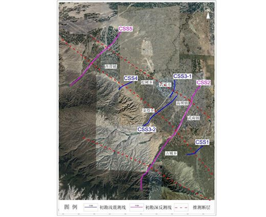 Neste projeto, 4 linhas superficiais de pesquisa de exploração sísmica artificial com um comprimento total de 31.308 km estão dispostas na margem sul da bacia de Wuwei. Existem 2 linhas de pesquisa de reflexão sísmica profunda com um comprimento de 65 km (Figura 3).